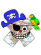 Glue the hat, face, parrot onto the pirate (the letter X). Draw some black lines or glue on black wool to finish off the eye patch.